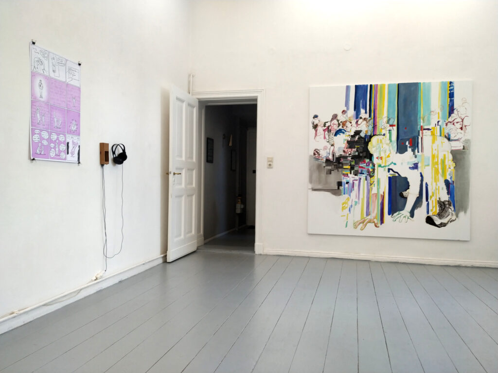 Es glitcht, es funktioniert nicht – wie für sich selbst, für das Eigene einstehen in einer Gesellschaft deren Krisen Schock nach Schock produzieren? Selbstbestimmung ist jetzt sogar per Gesetz erlassen, aber wie sieht es aus, tatsächlich für sich selbst zu bestimmen, an welche Grenzen stößt die Selbstbestimmung? In der Gesellschaft des etablierten Rechtsrucks verbreitet sich das Unbehagen und wirft die Frage auf, wie lange man sich einbringen kann, wann der Umschluss der Gesellschaft erdrückend wird. Auf der Suche nach Zusammenhalt, Kollaboration und Erkennen im Gegenüber gilt es, den Blick auf das Eigene zu erhalten. Welche Form bringen wir nach außen? Wie sich selbst behaupten? Und wie lange soll man sich einbringen wollen, wann bricht der Zusammenhang? Um das Unbehagen, das mit dem Einstehen für sich selbst einher geht, dreht sich die Ausstellung von Felix Böhmer, Ezra Ællen Church und Kaj Osteroth.